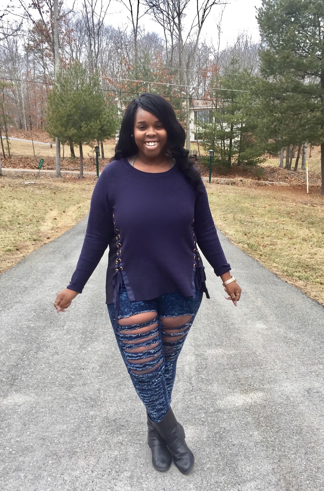 In comes this lace up sweater from INC International Concepts. I scored this by way of a free clothing subscription trial through Gwynnie Bee. Staying stylish on a budget is getting easier and easier! Basically, you search through loads of dresses, pants, and sweaters for what you like best, they send it to your house, and you can wear it as often as you like, send it back (or not), and repeat! This trial has been awesome because it's introduced me to a few plus size brands I'm not familiar with. including INC International Concepts, who blessed me with this awesome sweater.